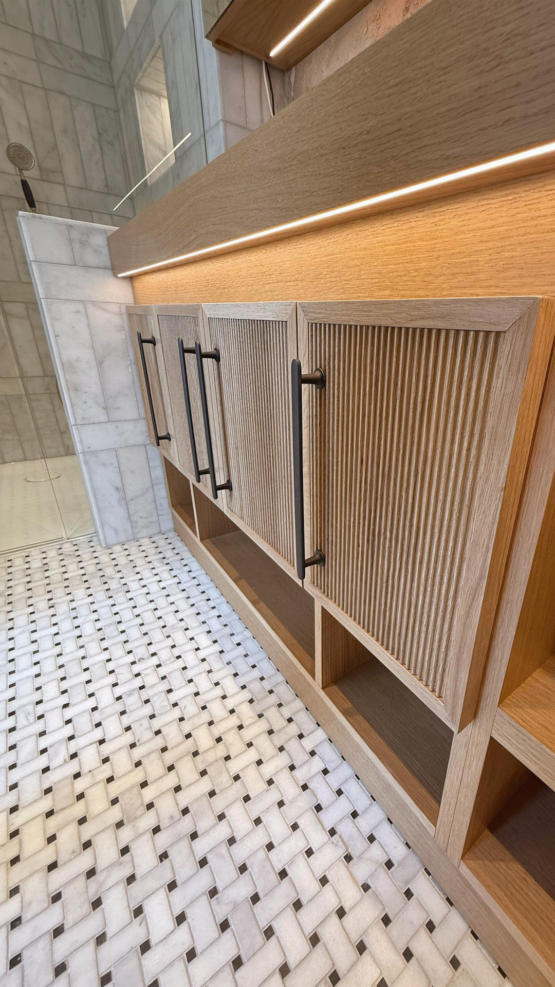 The space now blends refined contemporary finishes with thoughtful details, including custom made joinery, handcrafted kitchen with metalic finishes and marble worktops, Crittall style steel frame doors and partitions, and clever storage woven throughout. Every element was chosen to balance beauty and practicality, resulting in a home that feels both luxurious and lived-in.